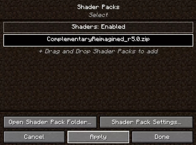 16. Regrese a Minecraft, elija el sombreador deseado y presione Aplicar.